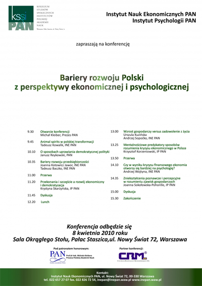 Tematem konferencji, na którą zostaliśmy zaproszeni przez Instytut Nauk Ekonomicznych PAN oraz Instytut Psychologii PAN mógł nas zaskoczyć. Psychologia i ekonomia? A może, jeśli się trochę nad tym zastanowić – zaskoczyć nie powinien wcale? Konferencję otworzył osobiście prezes Polskiej Akademii Nauk, prof. Michał Kleiber.